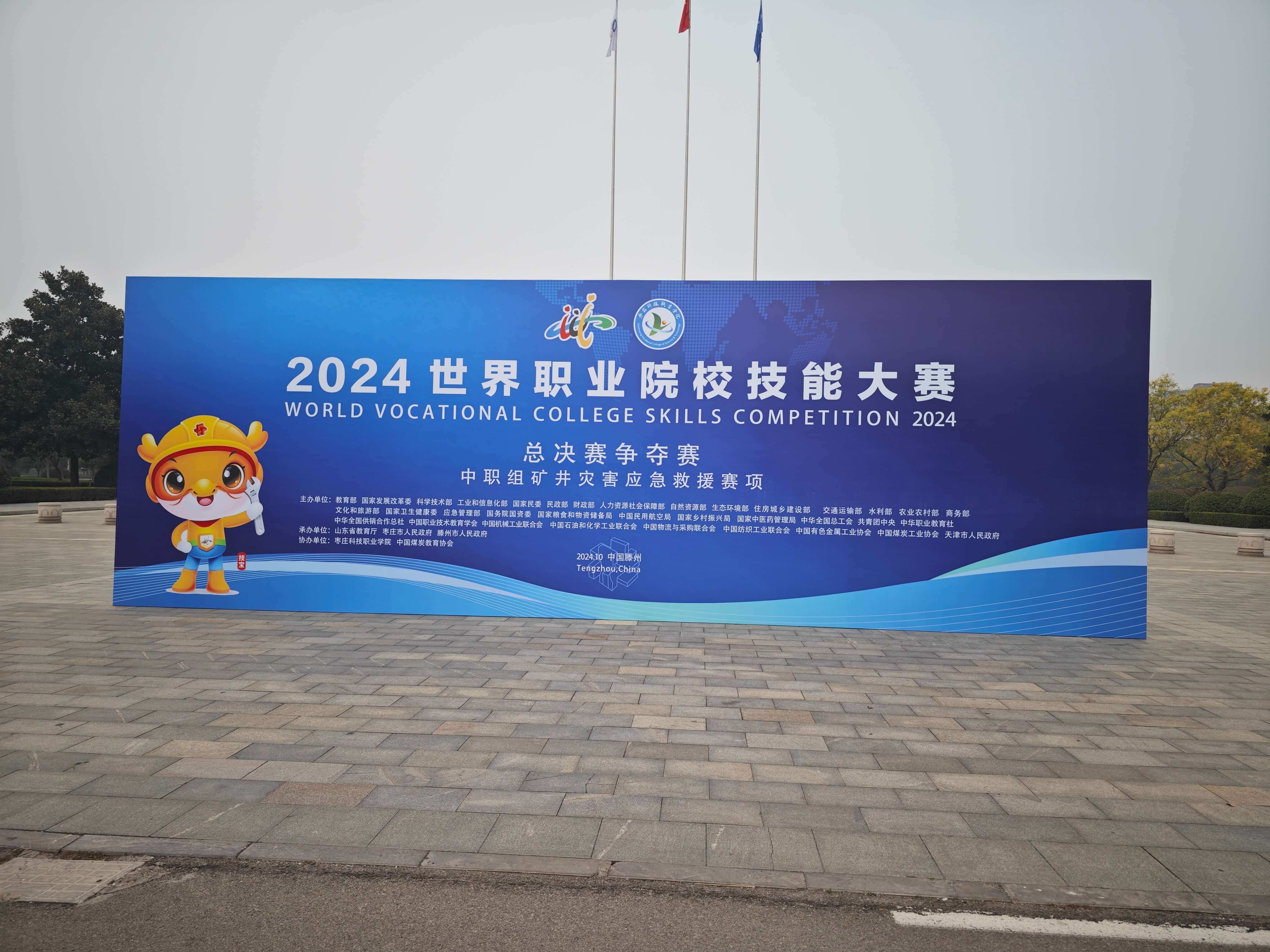 由教育部、国家发展改革委等35部委联合主办,山东省教育厅、枣庄市人民政府、滕州市人民政府承办的2024 年世界职业院校技能大赛总决赛争夺赛(中职组)“矿井灾害应急救援”赛项开赛式在枣庄科技职业学院大学生活动中心举行。